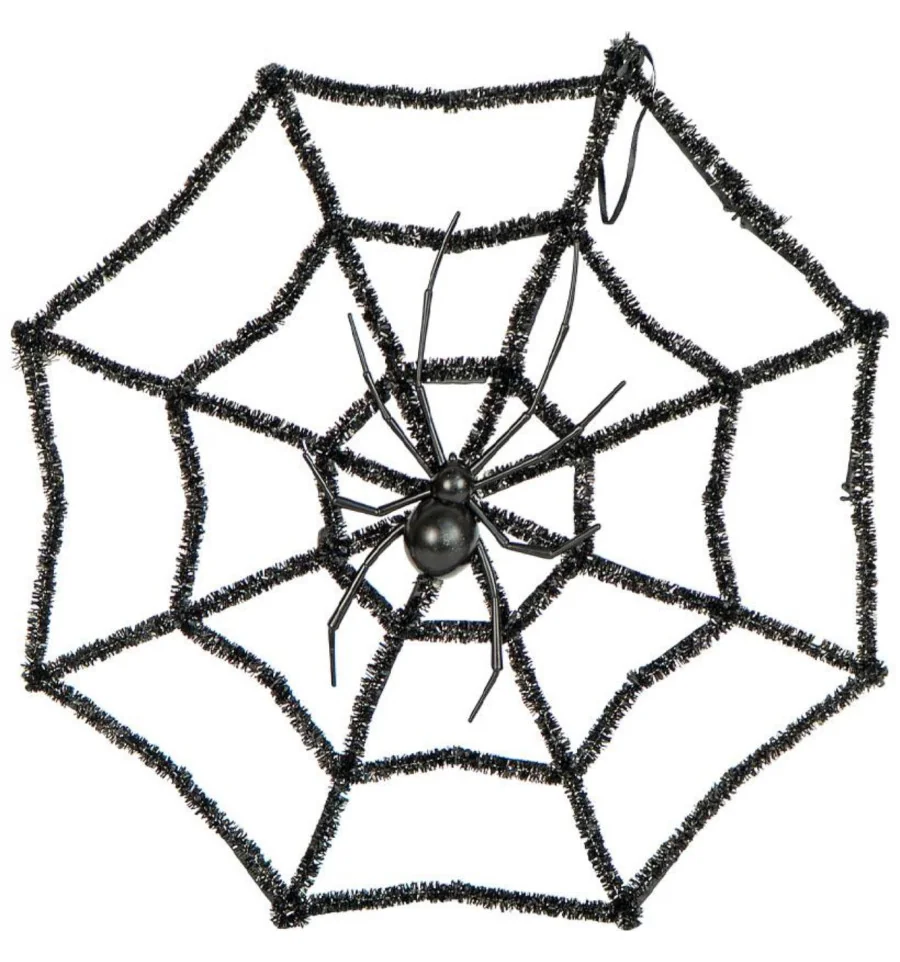Декоративний павук, розташований у центрі великої блискучої павутини, створить ефектне та атмосферне оформлення для вечірки, вітрини чи тематичного інтер'єру. Легкий, зручний в установці та візуально виразний елемент декору на Хелловін!