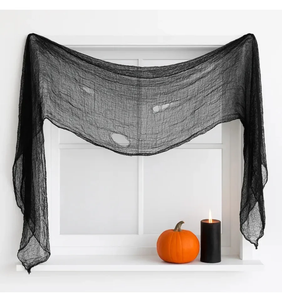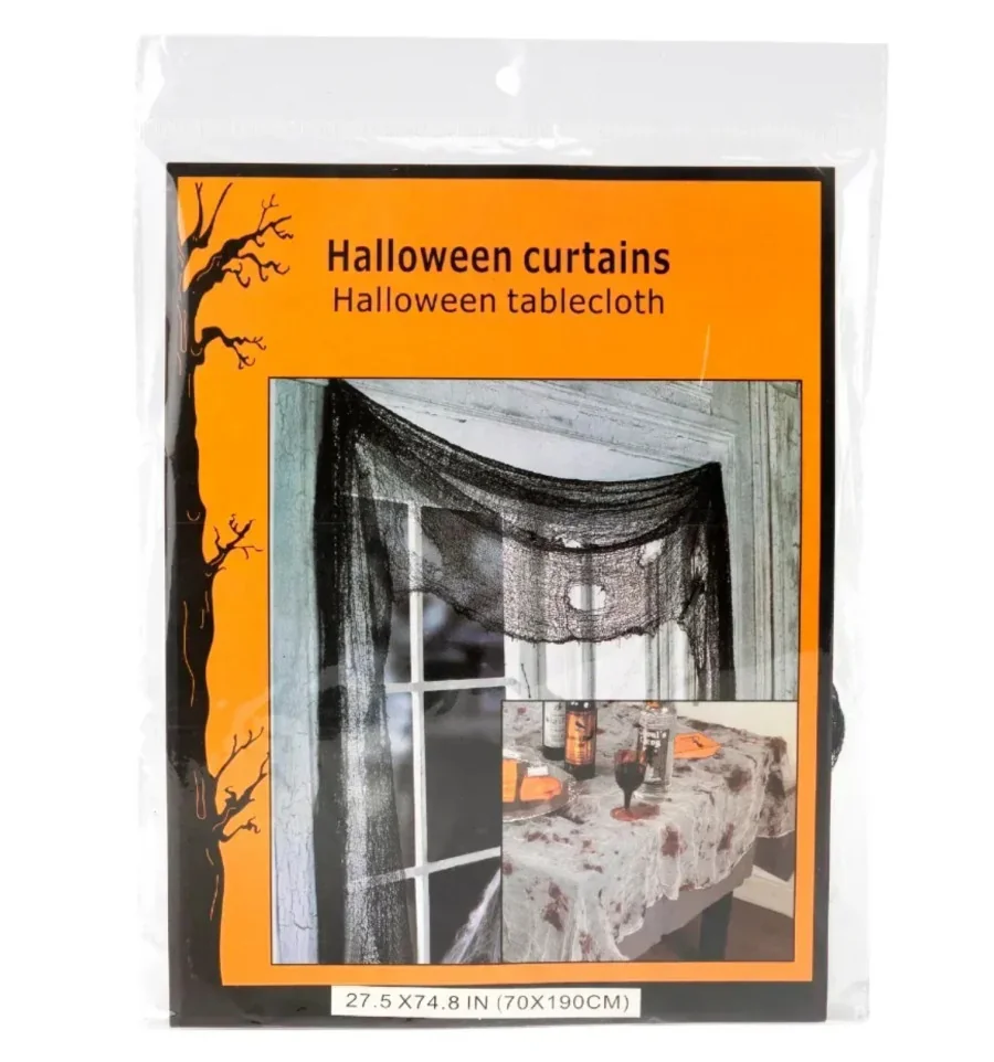 Напівпрозора чорна штора створює ефект містичної атмосфери будь-якого простору — вікно, дверний отвір, стіна або навіть святковий стіл. Універсальне використання: може служити як штора, скатертина або драпірування для фотозони.