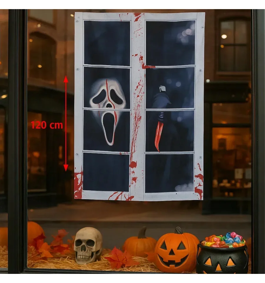 Плакат на Хелловін "Крік у вікні" – лякаючий постер-плакат з культовим чином, який кріпиться прямо на вікно за допомогою двостороннього скотчу (входить до комплекту).