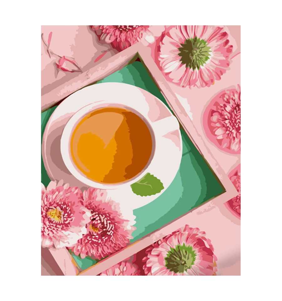 Картина за номерами ПРЕМІУМ Чаювання в рожевих відтінках з лаком та з рівнем розміром 40х50 см (GS1384) Картина за номерами від українського виробника поєднують творчість із грою. Вони розвивають фантазію, покращують пам'ять та дрібну моторику. А процес малювання знижує тривогу та знімає стреси.