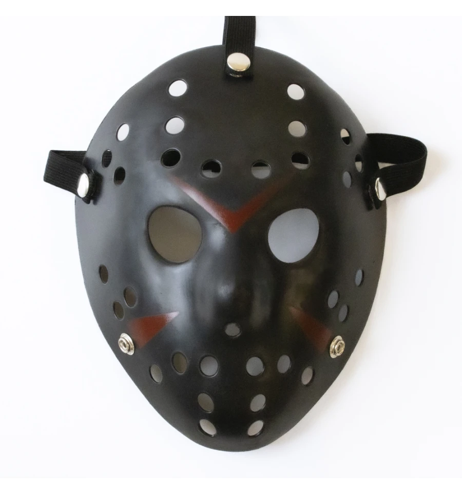 До вашої уваги представлена так звана хокейна маска Джейсона Вурхіза — вигаданого персонажа та головного героя серії фільмів жахів П'ятниця, 13-е. Джейсон кривавий маніяк і вбивця, широко відомий своїми жорстокими способами розправ над невинними жертвами. Щоб приховати своє потворне обличчя, Джейсон носить хокейну маску, яка змушує серце битися сильніше при одному погляді на неї. Маска Джейсона була змодельована випадковим чином з воротарської маски американської команди з хокею на льоду Detroit Red Wings, яку приніс на знімальний майданчик фахівець з 3D-ефектів картини і великий фанат хокею за сумісництвом Мартін Джей Садофф. Після цього маска використовувалася практично у всіх фільмах серії. Ніхто з знімальної групи, режисерів, продюсерів та акторів не міг і припустити, що в майбутньому ця хокейна маска допоможе стати персонажу фільму одним з найвідоміших кіно - героїв у світі. Тепер купити маску Джейсона ви можете і в нашому інтернет-магазині. Маска виконана з високоякісного високоміцного пластику. Зручно сидить на голові завдяки трьом резинкам. Маска Джейсона - чудовий варіант для костюма на Хеллоуїн або Новий Рік.