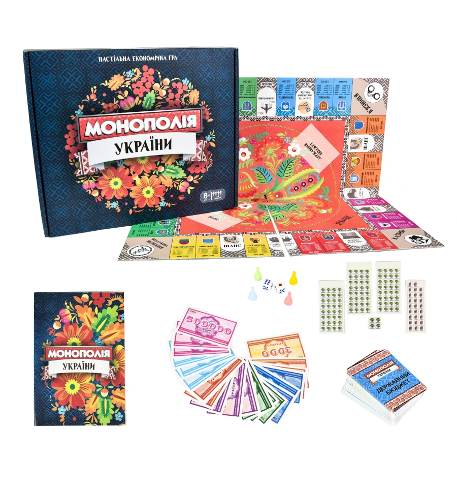 Комплектація | фішки для гравців, фішки для власності, картки, банкноти, ігрове поле, кубики, правила гри |