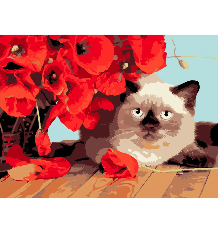 Картина за номерами ПРЕМІУМ Кошеня серед маків на чорному фоні розміром 30х40 см (FH-22)Картини за номерами від українського виробника поєднують творчість з грою. Вони розвивають фантазію, покращують пам'ять і дрібну моторику. А процес малювання знижує тривогу і знімає стрес.