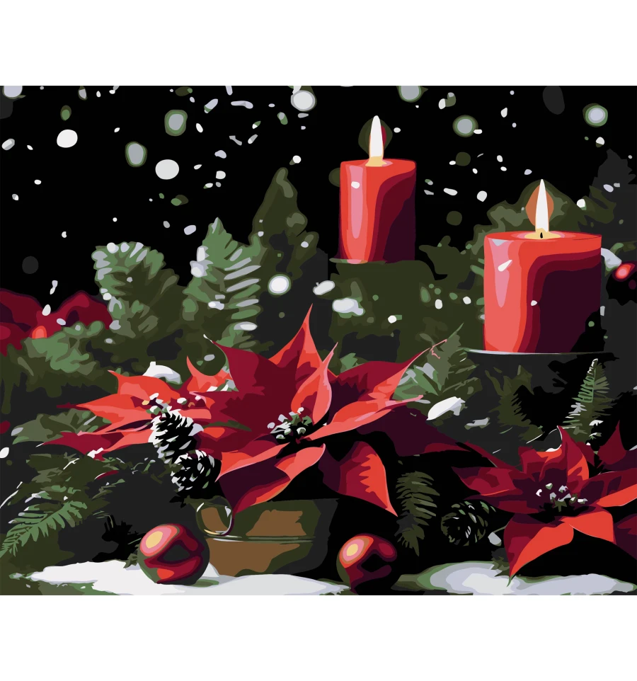 Картина за номерами ПРЕМІУМ Різдвяний вінок зі свічками на чорному фоні розміром 40х50 см (AH1234)Картини за номерами від українського виробника поєднують творчість з грою. Вони розвивають фантазію, покращують пам'ять і дрібну моторику. А процес малювання знижує тривогу і знімає стрес.