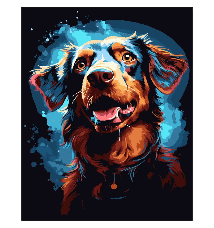 Картина за номерами ПРЕМІУМ Веселий пес на чорному фоні розміром 40х50 см (AH1208-17)Картини за номерами від українського виробника поєднують творчість з грою. Вони розвивають фантазію, покращують пам'ять і дрібну моторику. А процес малювання знижує тривогу і знімає стрес.