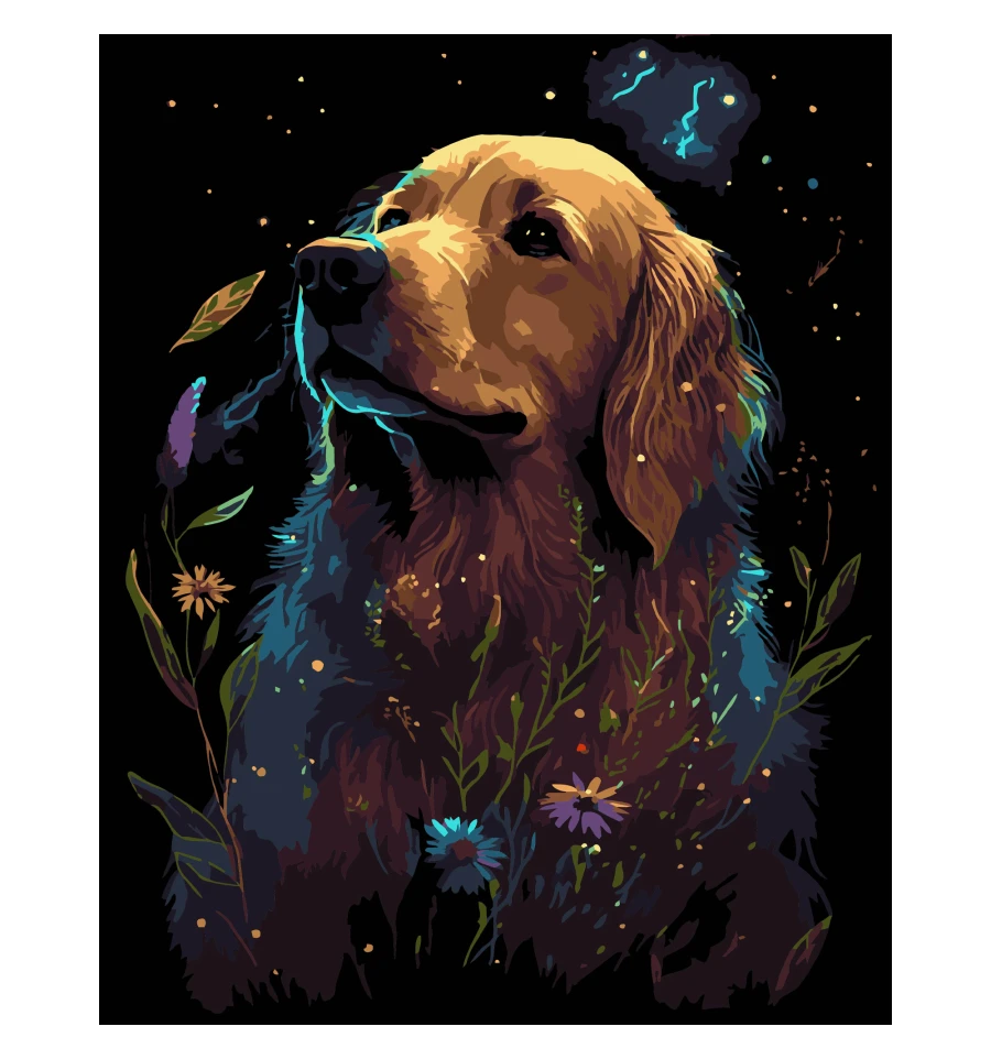 Картина за номерами ПРЕМІУМ Золотий ретривер на чорному фоні розміром 40х50 см (AH1206-17)Картини за номерами від українського виробника поєднують творчість з грою. Вони розвивають фантазію, покращують пам'ять і дрібну моторику. А процес малювання знижує тривогу і знімає стрес.