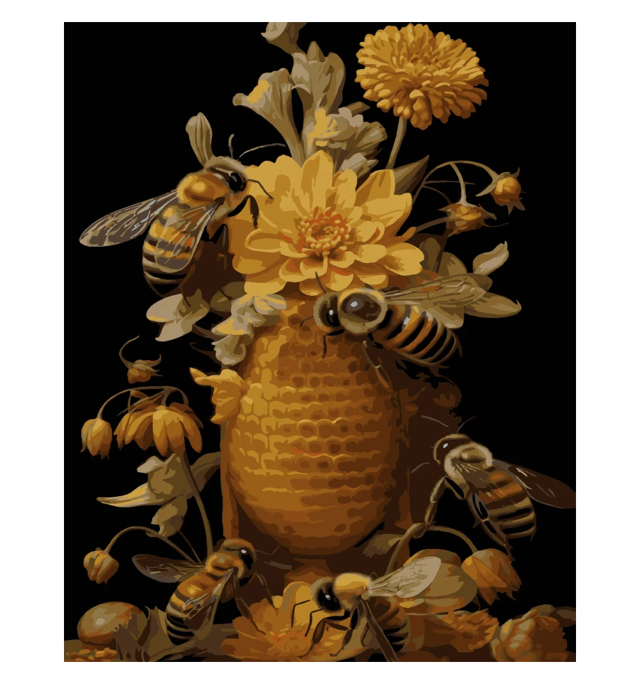Картина за номерами ПРЕМІУМ Бджоли та квіти на чорному фоні розміром 40х50 см (AH1194-16)Картини за номерами від українського виробника поєднують творчість з грою. Вони розвивають фантазію, покращують пам'ять і дрібну моторику. А процес малювання знижує тривогу і знімає стрес.