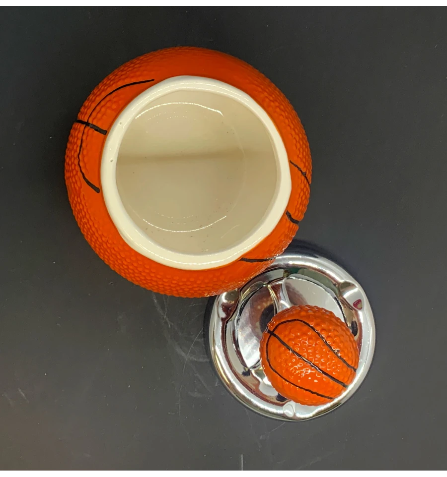 Керамічна попільничка з кришкою "Баскетбольний м'яч". Це стильний та практичний виріб, який обов'язково сподобається всім любителям баскетболу.