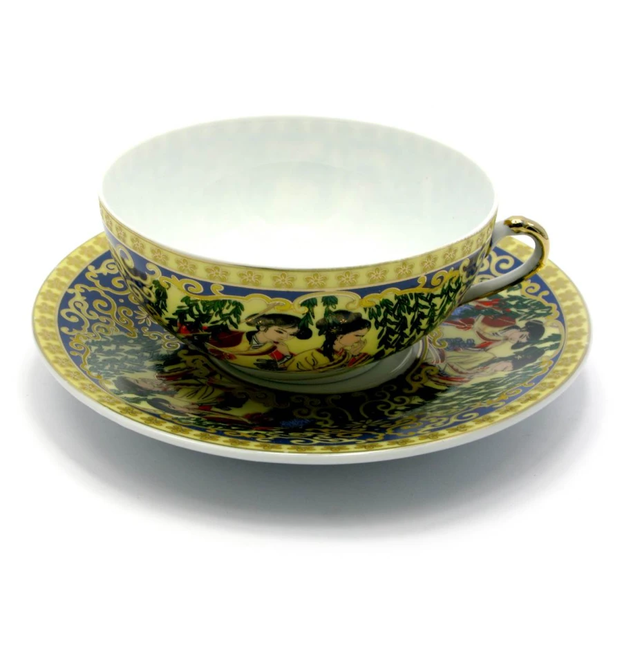 Чашка + блюдце фарфор (150мл) (SBS86-5) «Зелена верба» (h-4.5 см, d-9.5 см d блюдця-13 см)