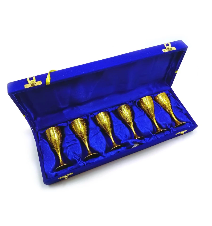 Чарки бронзові позолочені (н-р 6 шт. / 60мл) (H-9.5 см) (38×13.5×6 см)