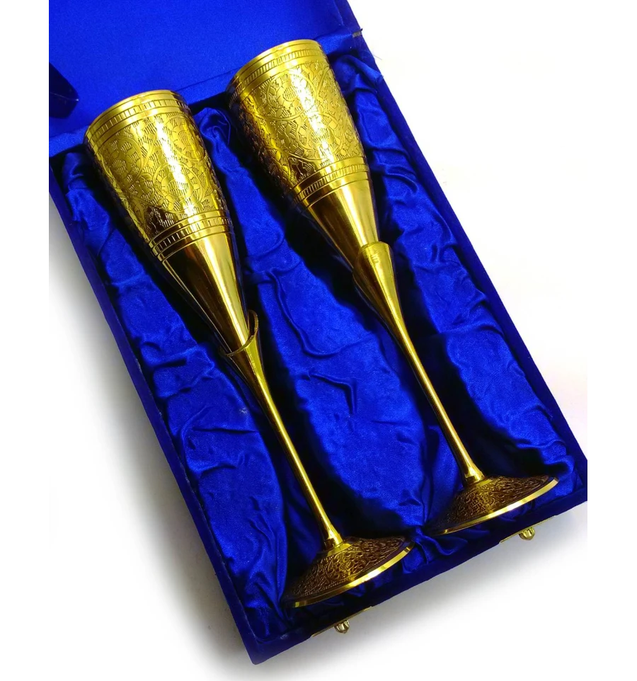 Бокалы бронзовые позолоченные (н-р 2 шт./170мл) (h-25 см) (26.5×18×9 см) купить в интернет магазине подарков ПраздникШоп