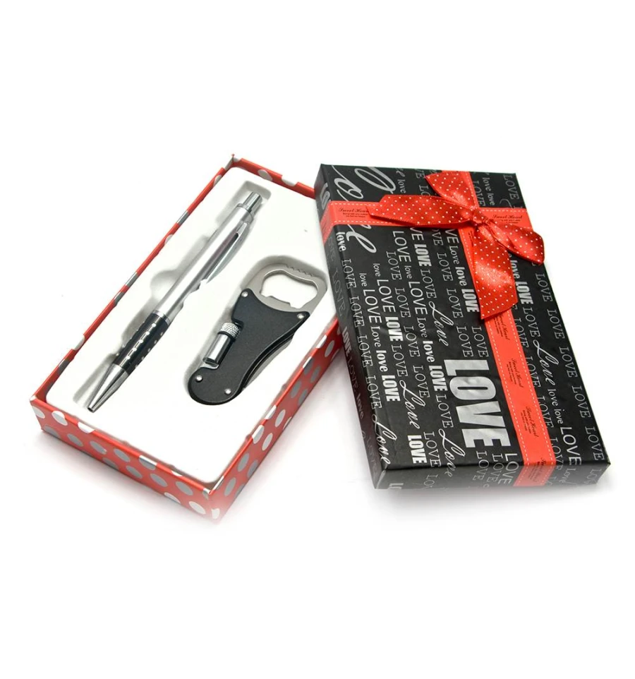 Ручка з відкривачкою ножем ліхтариком набір (16.5×10×3 см)