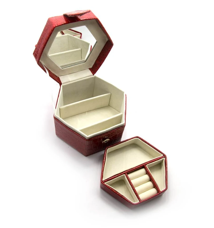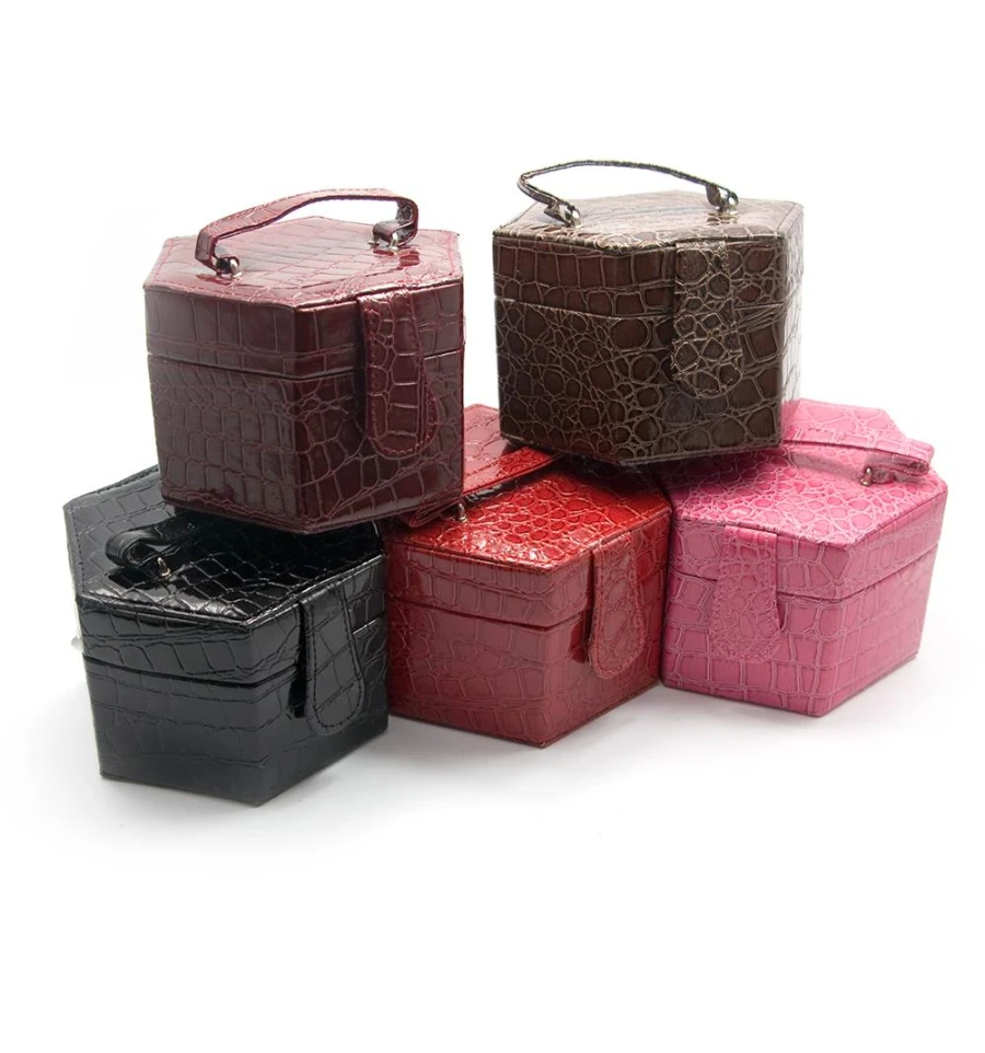 Шкатулка для прикрас шестигранна крокодиляча шкіра (13×14.5×10 см)