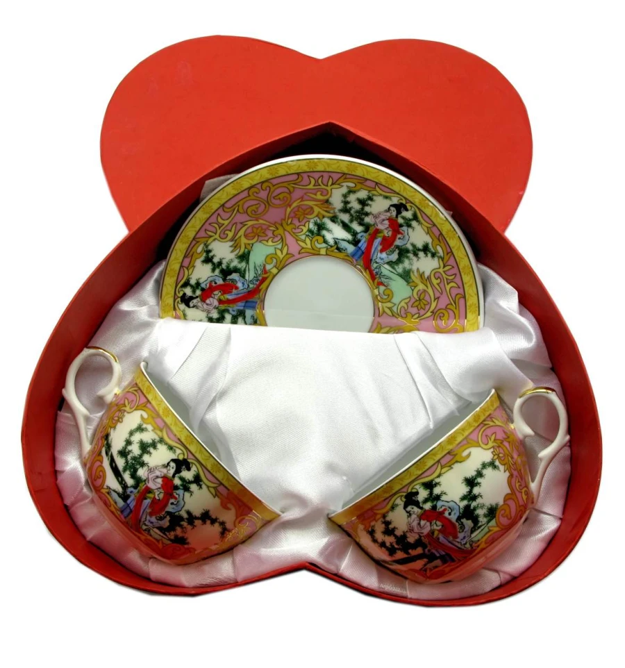 Сервиз фарфор (2JBS111-8) 2 чашки +2 блюдца «Девушка» (210 мл) (h-6 см купить в интернет магазине подарков ПраздникШоп