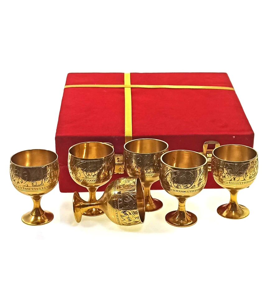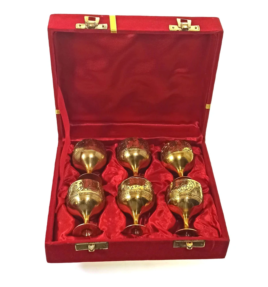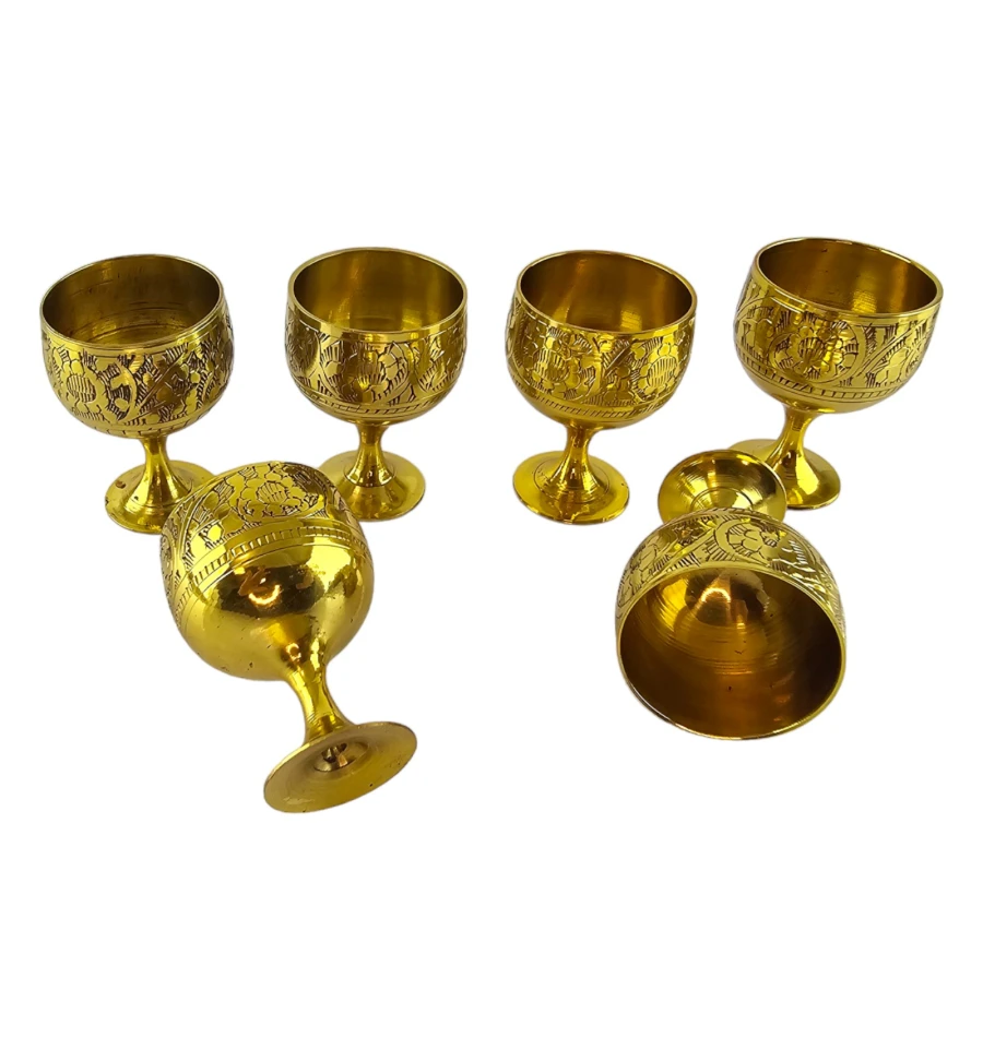 Чарки бронзові позолочені (н-р6 шт. / 30 мл) h-5.5 (18.5×15.5×5.5 см)
