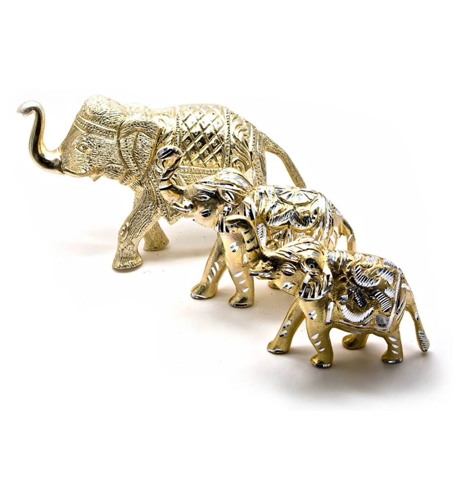 Слоны резные алюминий (н-р 3 шт.) (25×14 см16×13 см17×11.5 см) купить в интернет магазине подарков ПраздникШоп