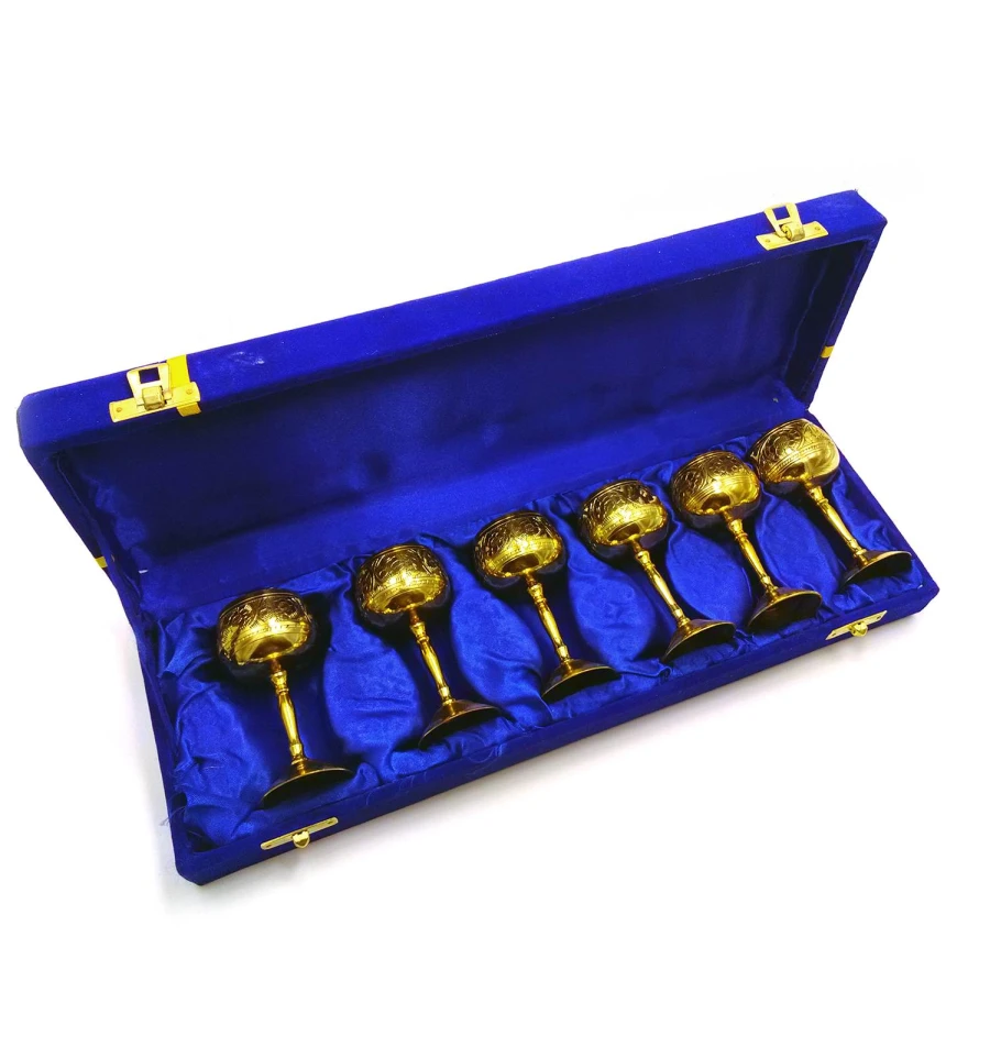 Рюмки бронзовые позолоченные (н-р 6 шт./50мл) (h-9 см) (36×12×5 см) купить в интернет магазине подарков ПраздникШоп