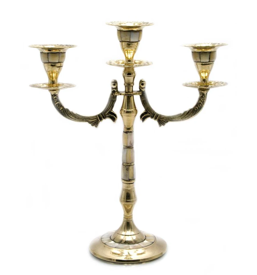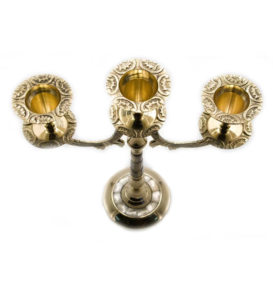 Свічник бронзовий з перламутром на 3 свічки (25×21×9 см)