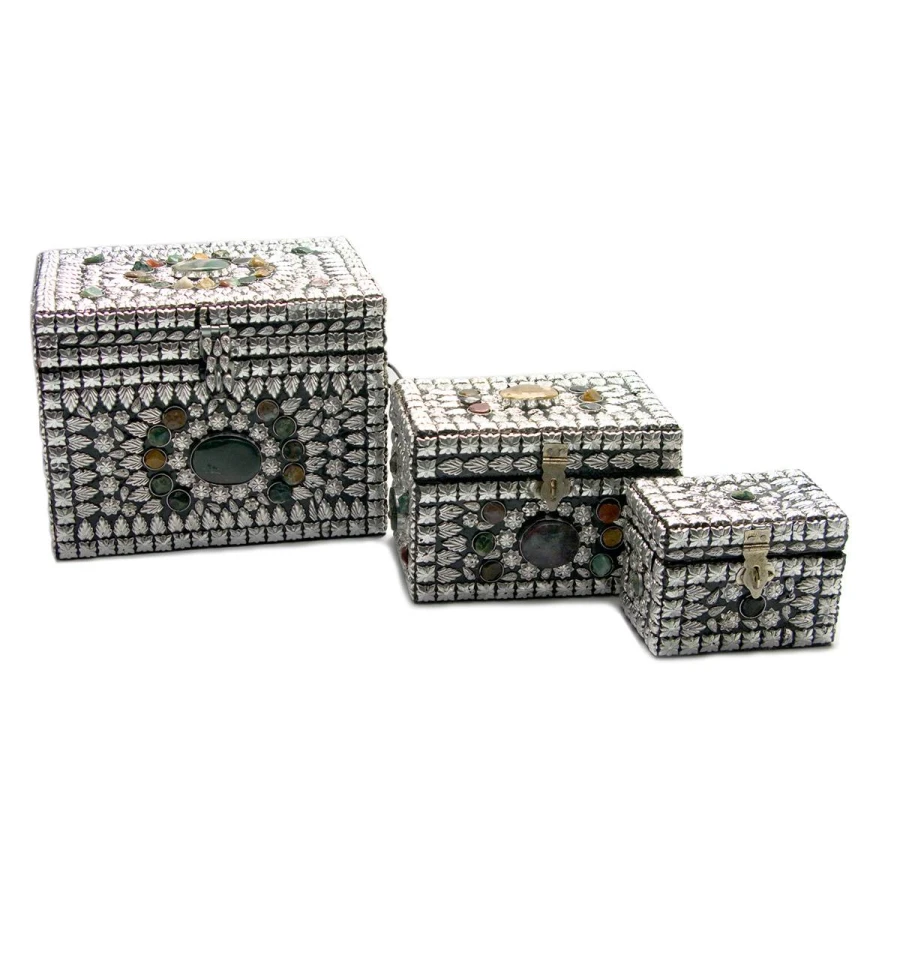 Скрині металеві з камінням (н-р 3 шт.) (20×17×16 см)