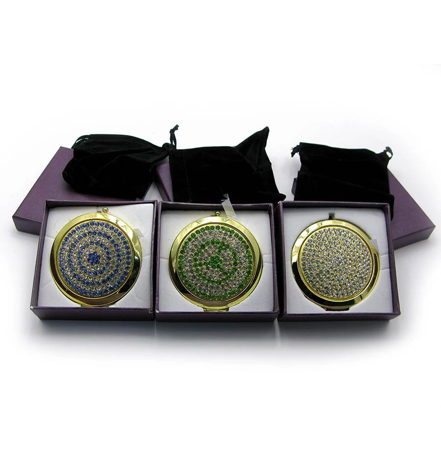 Зеркальце косметическое «Стразы» золото (d-7 см) (в коробке + чехольчик) купить в интернет магазине подарков ПраздникШоп