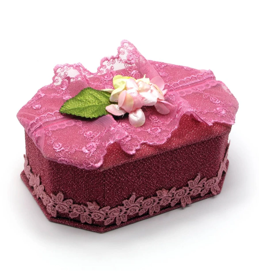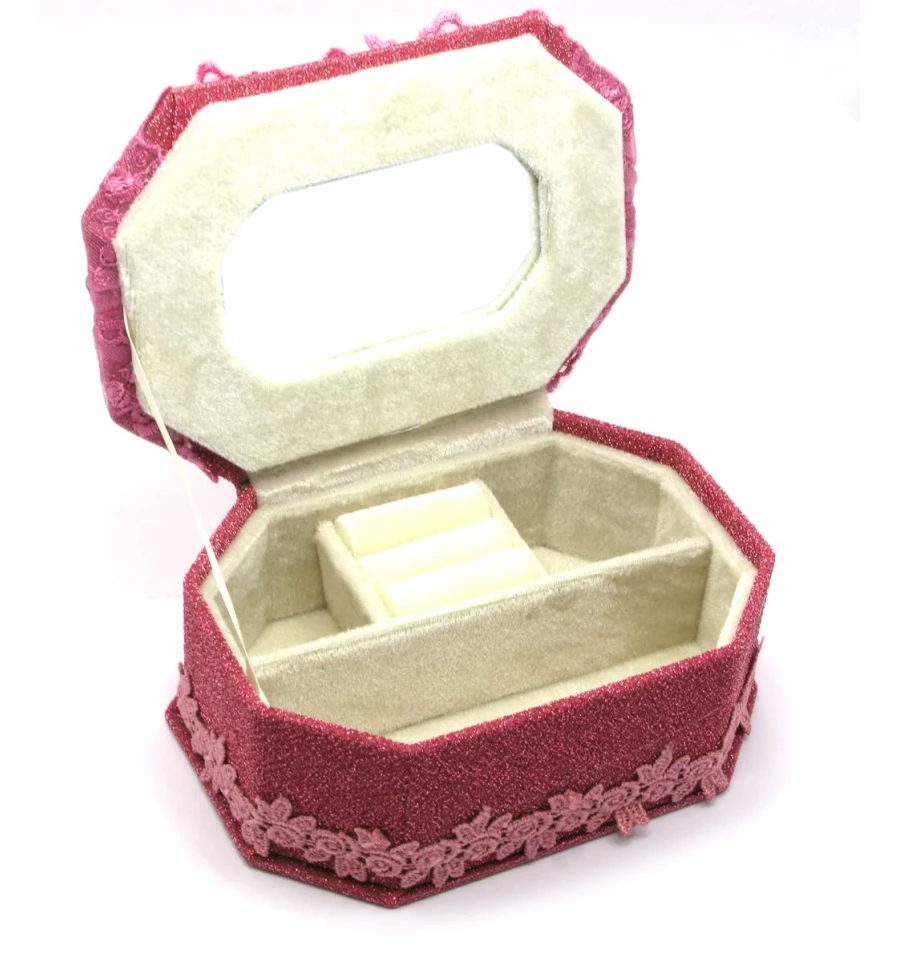 Шкатулка для біжутерії з дзеркальцем «Восьмигранна» тканина (17×12×8.5 см)