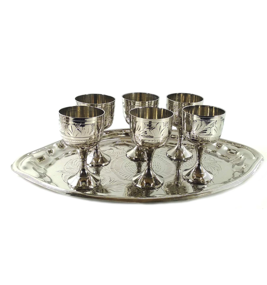 Рюмки бронзовые хром (н-р 6 шт./50мл) (h-8 см поднос 30.5×20 см) купить в интернет магазине подарков ПраздникШоп