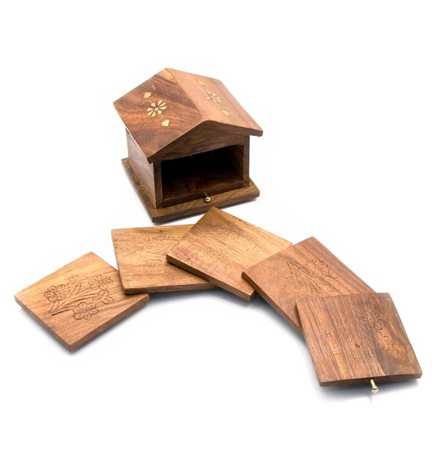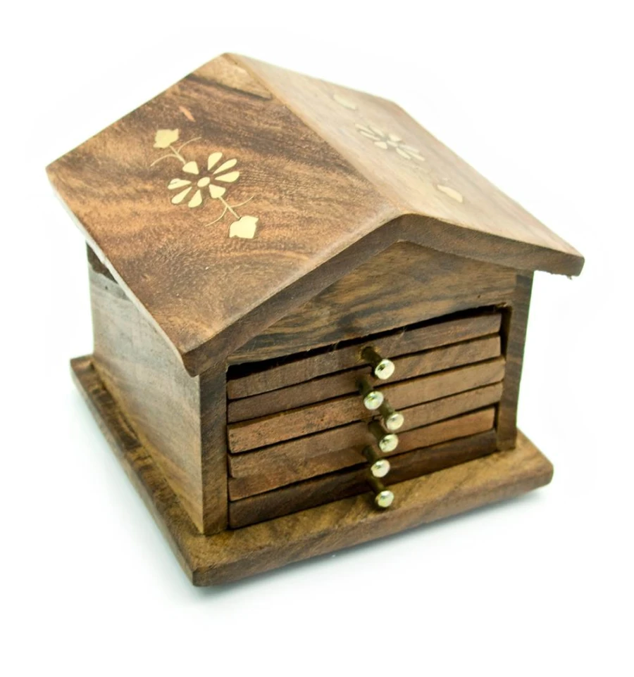 Підстаканники «Будиночок» (н-р 6 шт.) рожеве дерево (10×10×9 см)