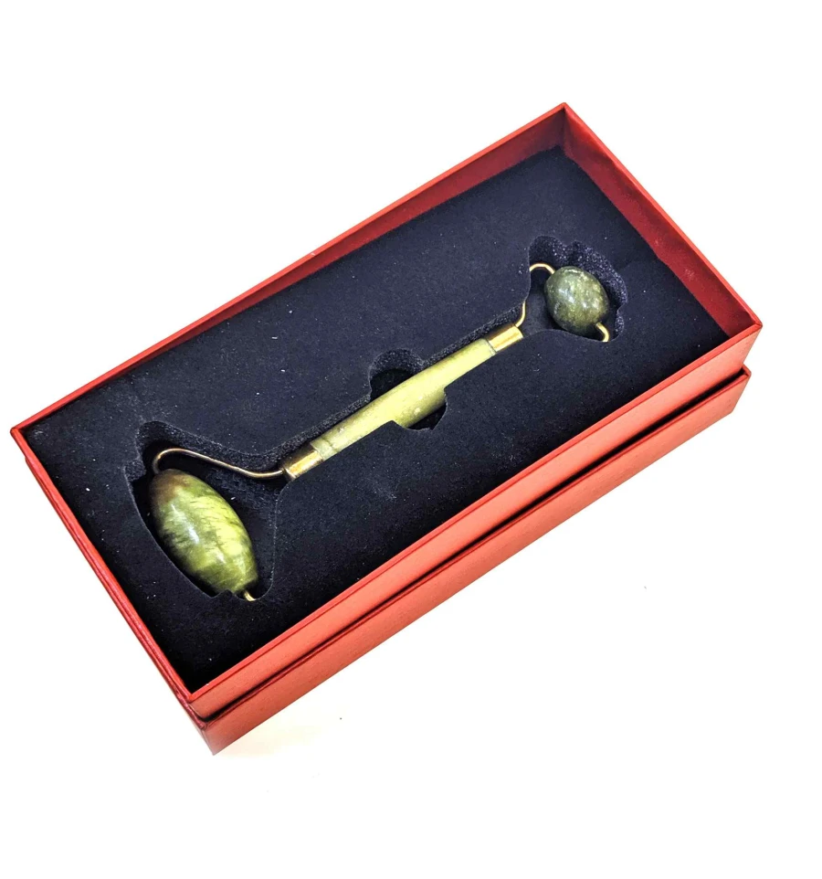 Масажер нефритовий подвійний валик із ручкою у футлярі (14.5×5.5×2 см)