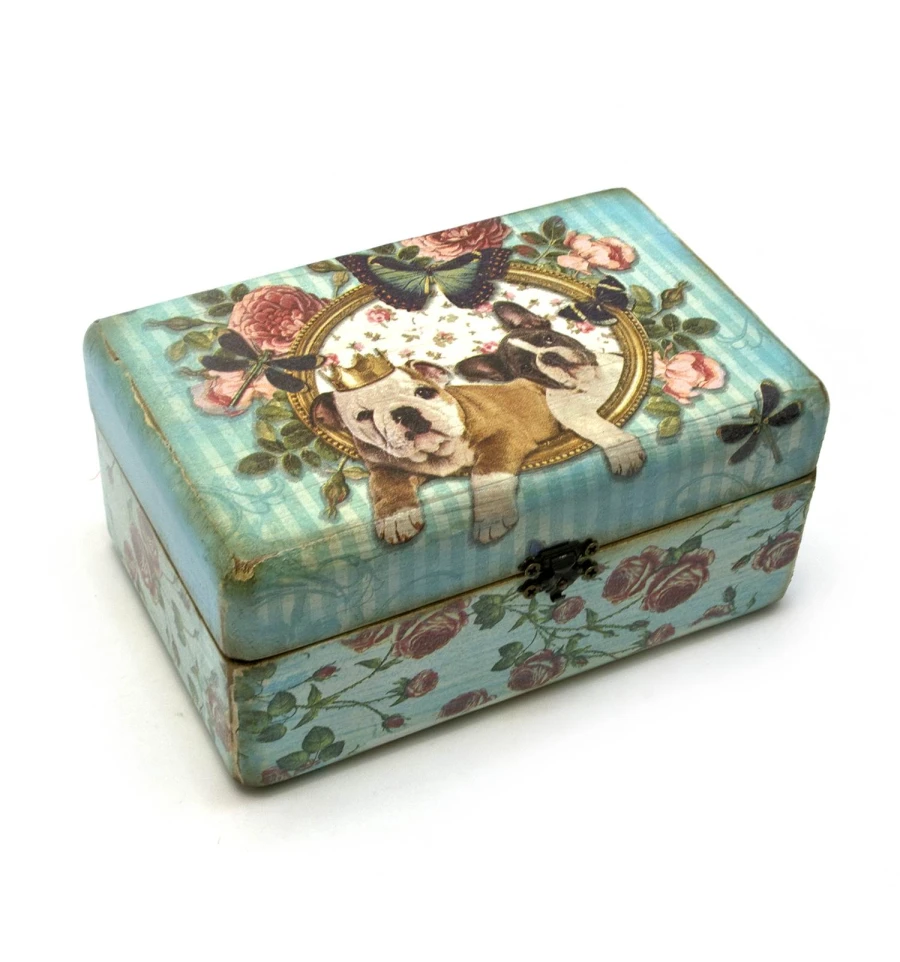 Шкатулка дерево «Щеночки» (дуб, ясень) (16×10×6 см) из массива дерева