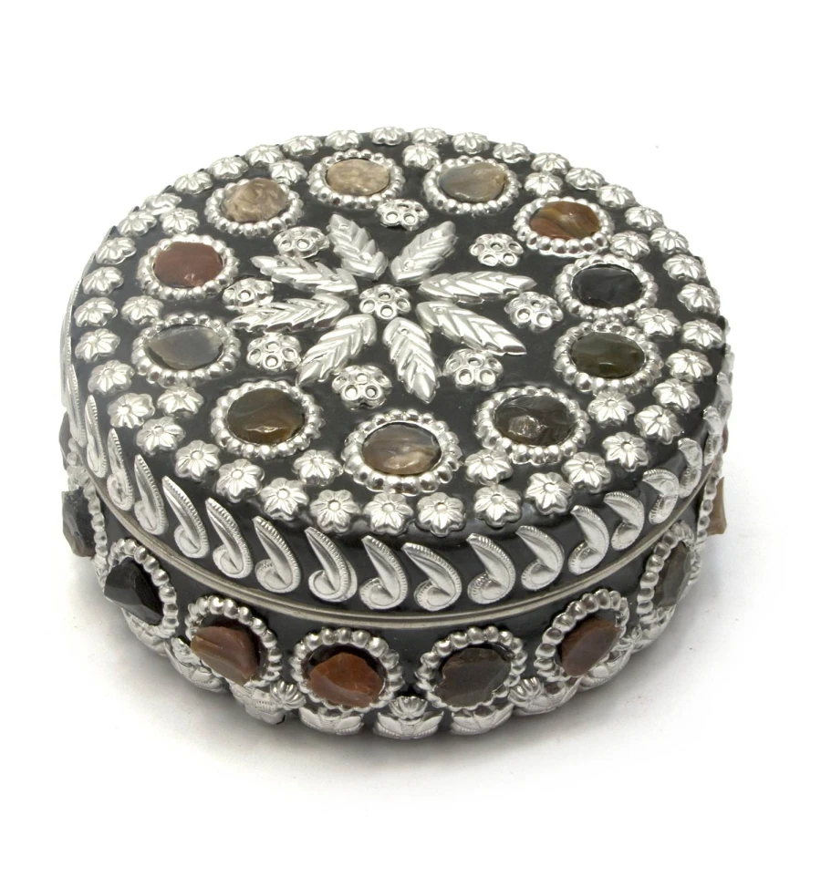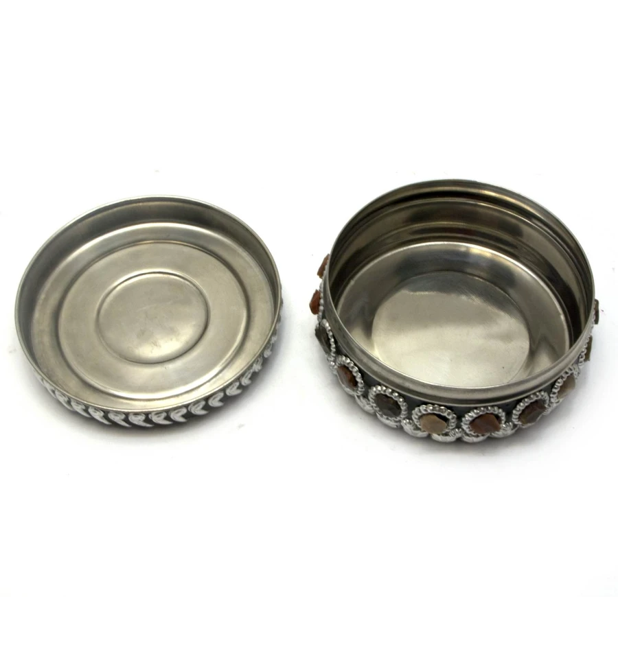 Скринька металева з камінням може використовуватися для зберігання дрібниць, прикрас, монет або інших цінних предметів. Вона чудово підійде для прикраси інтер'єру та стане привабливим елементом декору у вашому будинку чи офісі.