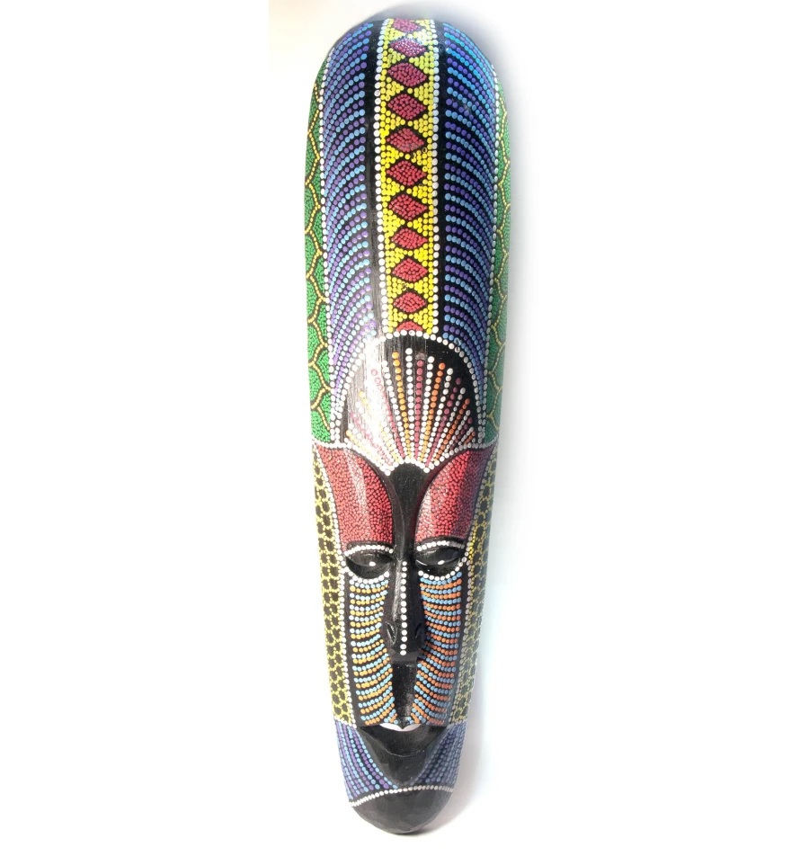 Індонезія знаходиться у тропічному раю. Індонезійці – позитивні, усміхнені люди. Творіння, зроблені їх руками, несуть енергію: сонця, вічного літа, теплого моря, буйної тропічної рослинності і позитиву. Маска стане цікавим подарунком та прикрасою будь-якого інтер'єру та створить у будинку атмосферу затишку та тепла.
