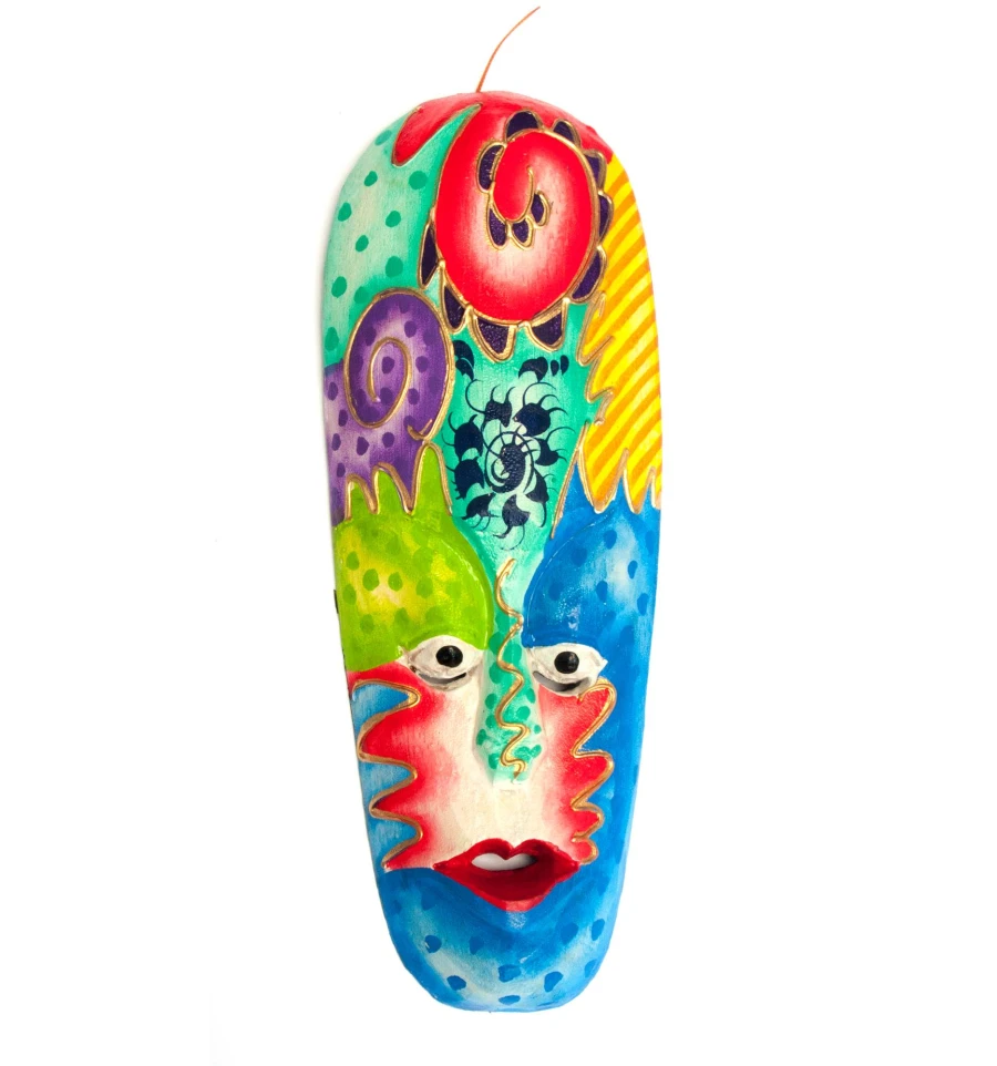 Індонезія знаходиться у тропічному раю. Індонезійці – позитивні, усміхнені люди. Творіння, зроблені їх руками, несуть енергію: сонця, вічного літа, теплого моря, буйної тропічної рослинності і позитиву. Маска стане цікавим подарунком та прикрасою будь-якого інтер'єру та створить у будинку атмосферу затишку та тепла.