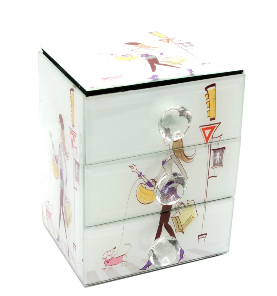 Шкатулка для украшений «Девушка с собачкой»с зеркальцем стеклянная (15×12×9.5 см) купить в интернет магазине подарков ПраздникШоп