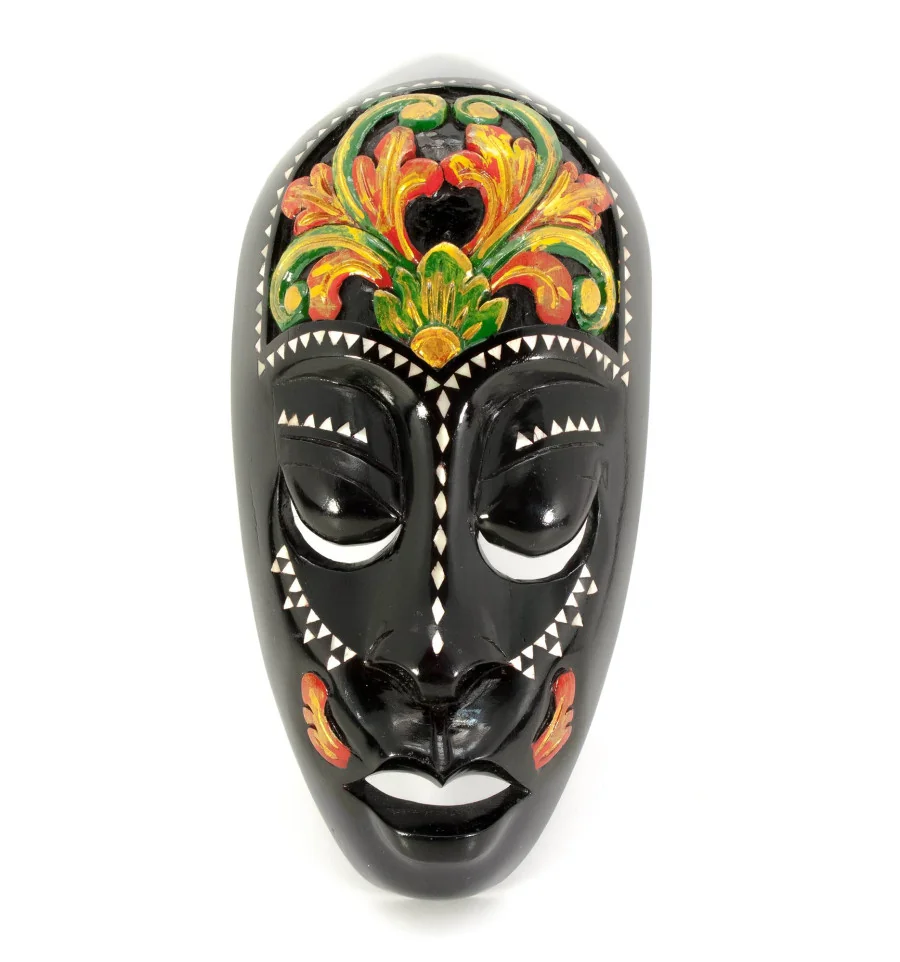 Індонезія знаходиться у тропічному раю. Індонезійці – позитивні, усміхнені люди. Творіння, зроблені їх руками, несуть енергію: сонця, вічного літа, теплого моря, буйної тропічної рослинності і позитиву. Маска стане цікавим подарунком та прикрасою будь-якого інтер'єру та створить у будинку атмосферу затишку та тепла.