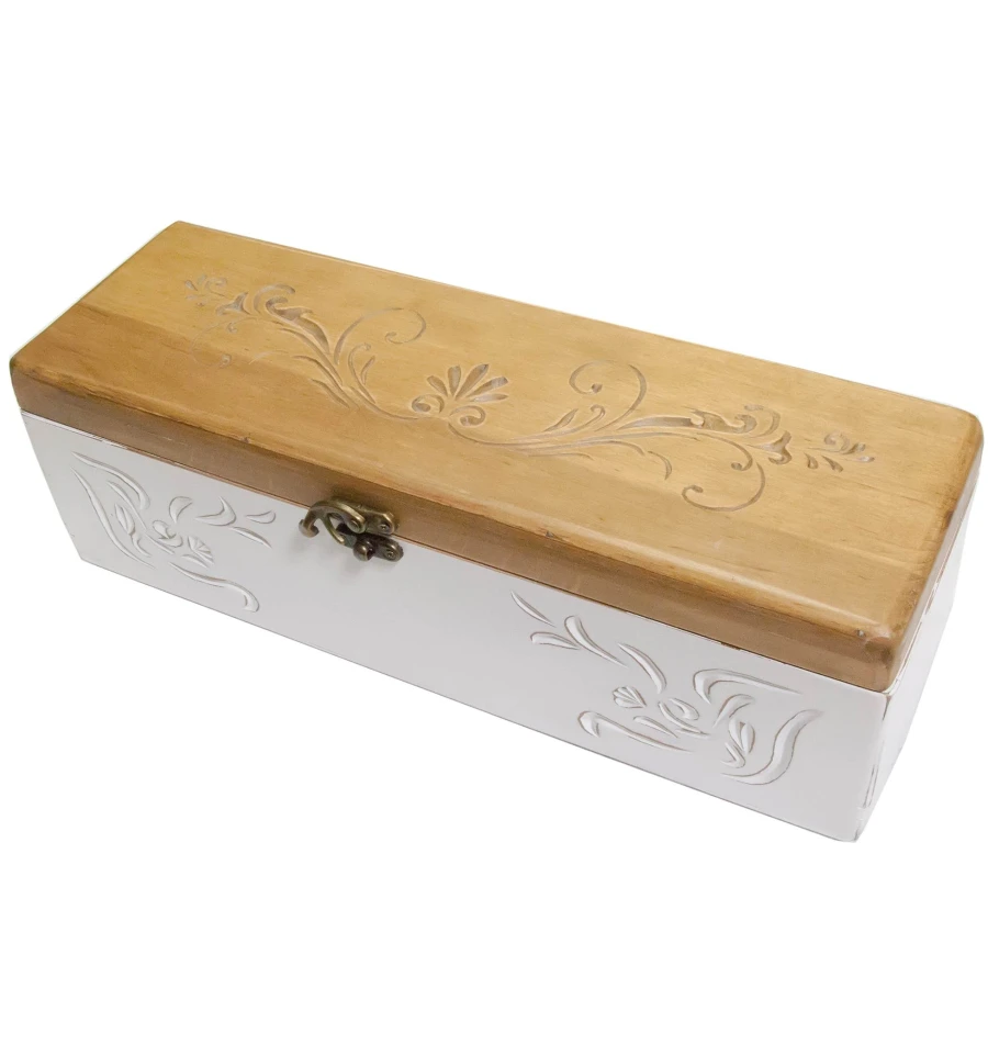 Футляр для пляшок з барменським ножем «Молочний прованс» (масив дерева 36×11.5×11.5 см)