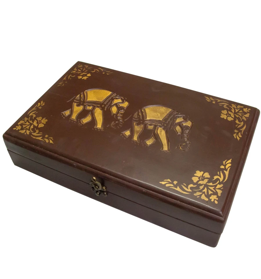 Футляр для келихів різьбленої «Слони» масив дерева (37×24×8 см)