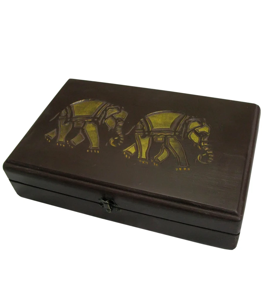 Футляр для келихів різьбленої «Слони» масив дерева (31×20×7.5 см)