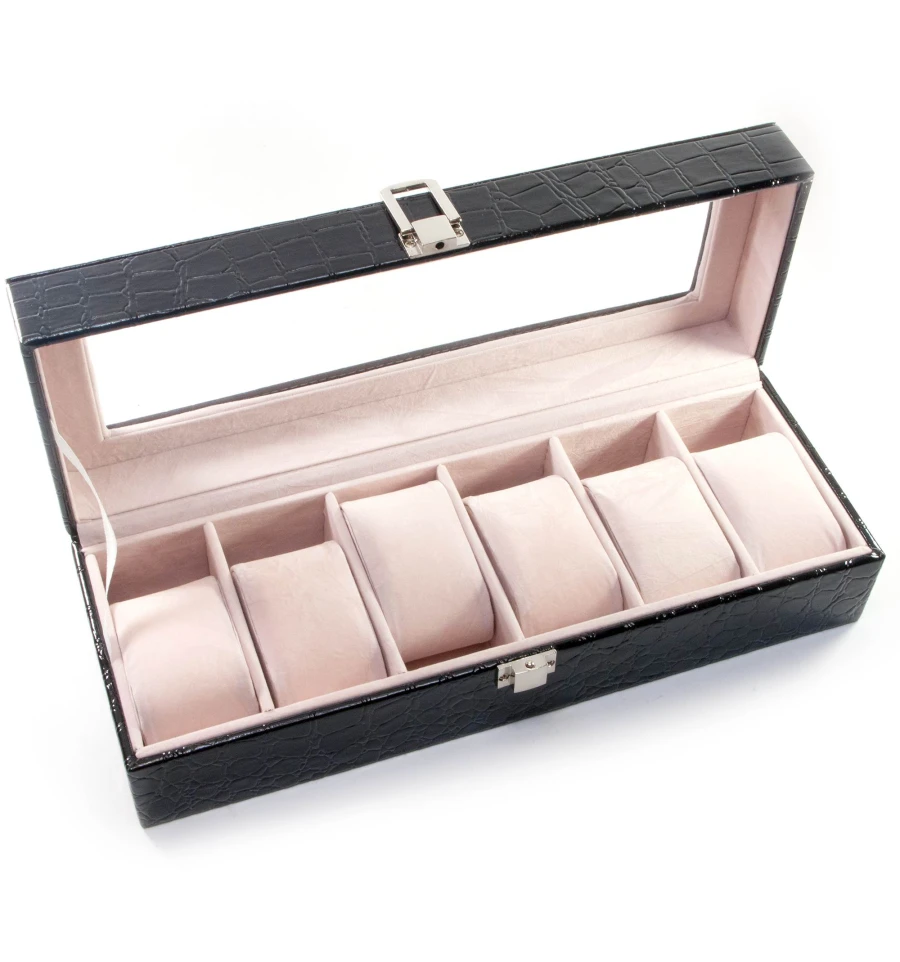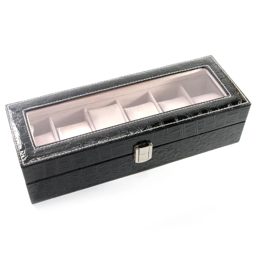 Скринька для годинника тиснена чорна шкіра (30.5×11×8 см)