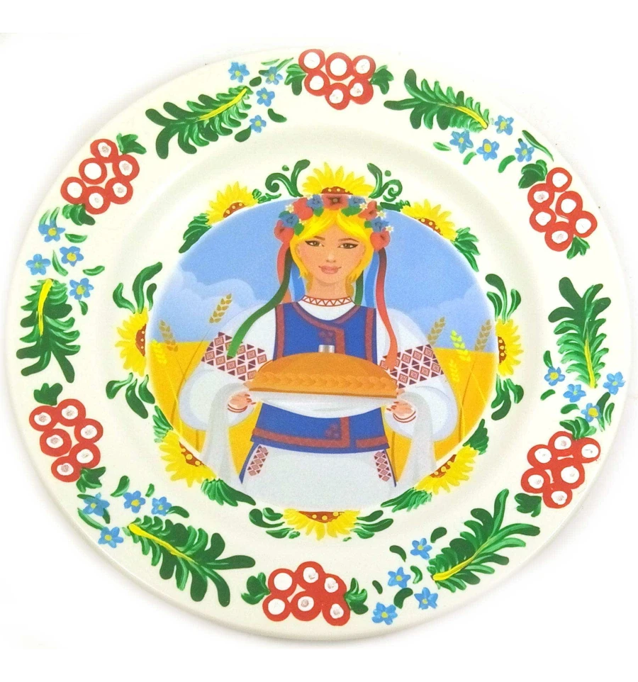 Тарелка «Украинка с караваем» расписано вручную (24 см) купить в интернет магазине подарков ПраздникШоп