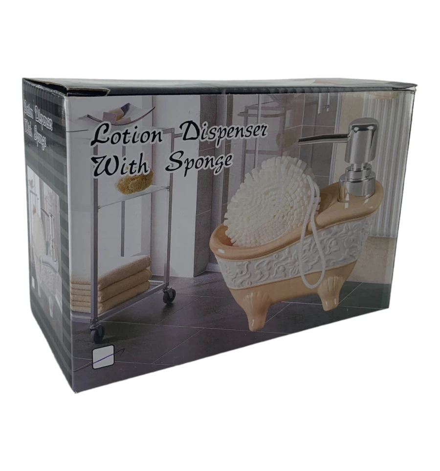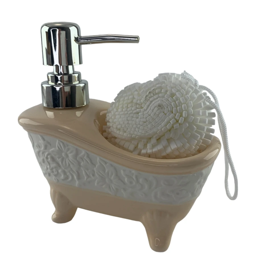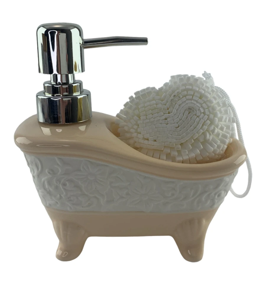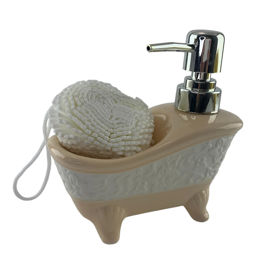 Диспенсер для мила із мочалкою "Ванна" кремовий.