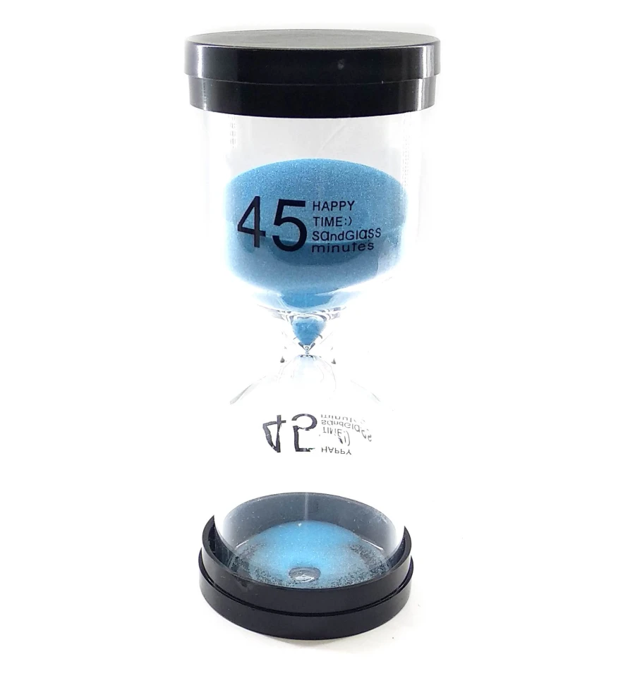 Відкрийте для себе пісочний годинник з синім піском і часом роботи до 45 хвилин! Цей стильний годинник не тільки допоможе вам відміряти час, але і додасть шарму вашому інтер'єру.