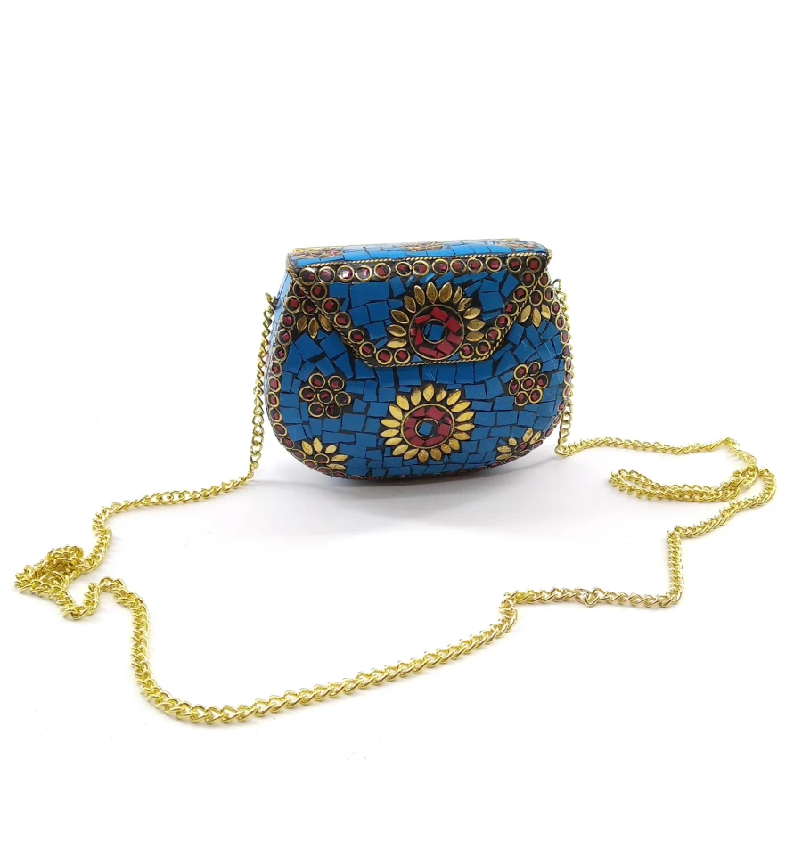 Сумочка бронзовая с кораллами и бирюзой синяя (13.5×10×5 см) купить в интернет магазине подарков ПраздникШоп