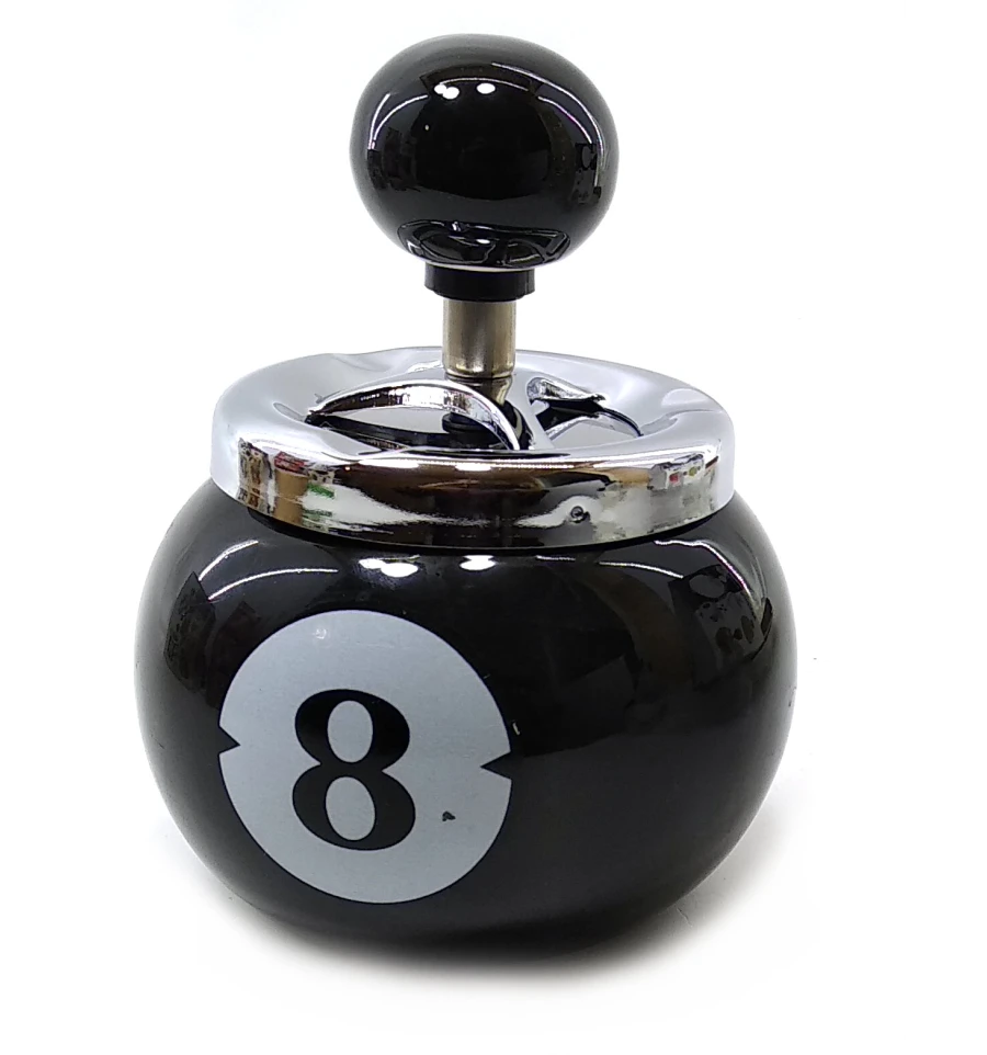 Попільничка "Юла" із зображенням більярдної кулі - це не лише зручний аксесуар, а й унікальний елемент декору для вашого будинку. Купуючи цю стильну і зручну попільничку, ви більше не будете турбуватися про сміття та запахи.
