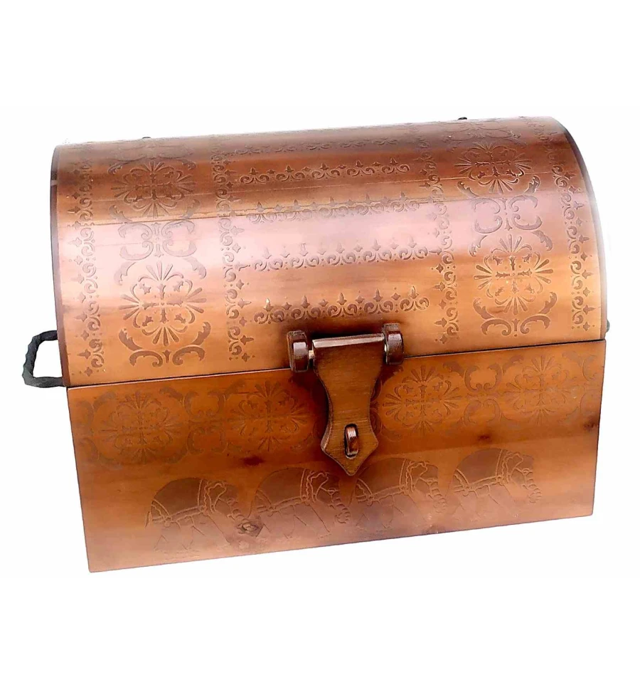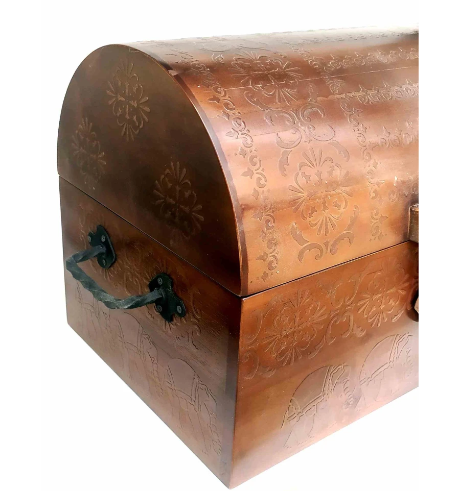 Скриня зроблена з масиву дерева, розписана вручну; використовується, як ємність для зберігання предметів побуту, коштовностей та інших цінних речей. Замки та ручки зроблені з дерева, прикрашений мереживом.