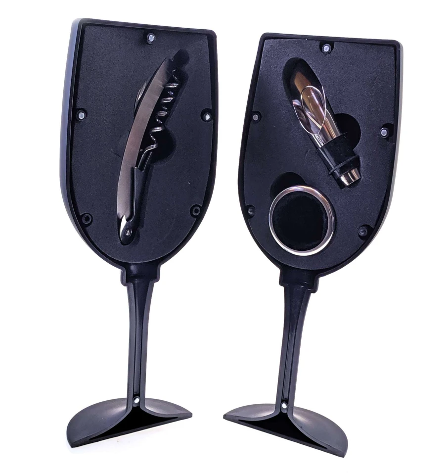 Стильний набір, який зробить розпиття напою ще приємнішим. Набір винних аксесуарів - це зручний та елегантний набір для відкорковування та розливу вин. Корисний та потрібний подарунок для любителів вина.