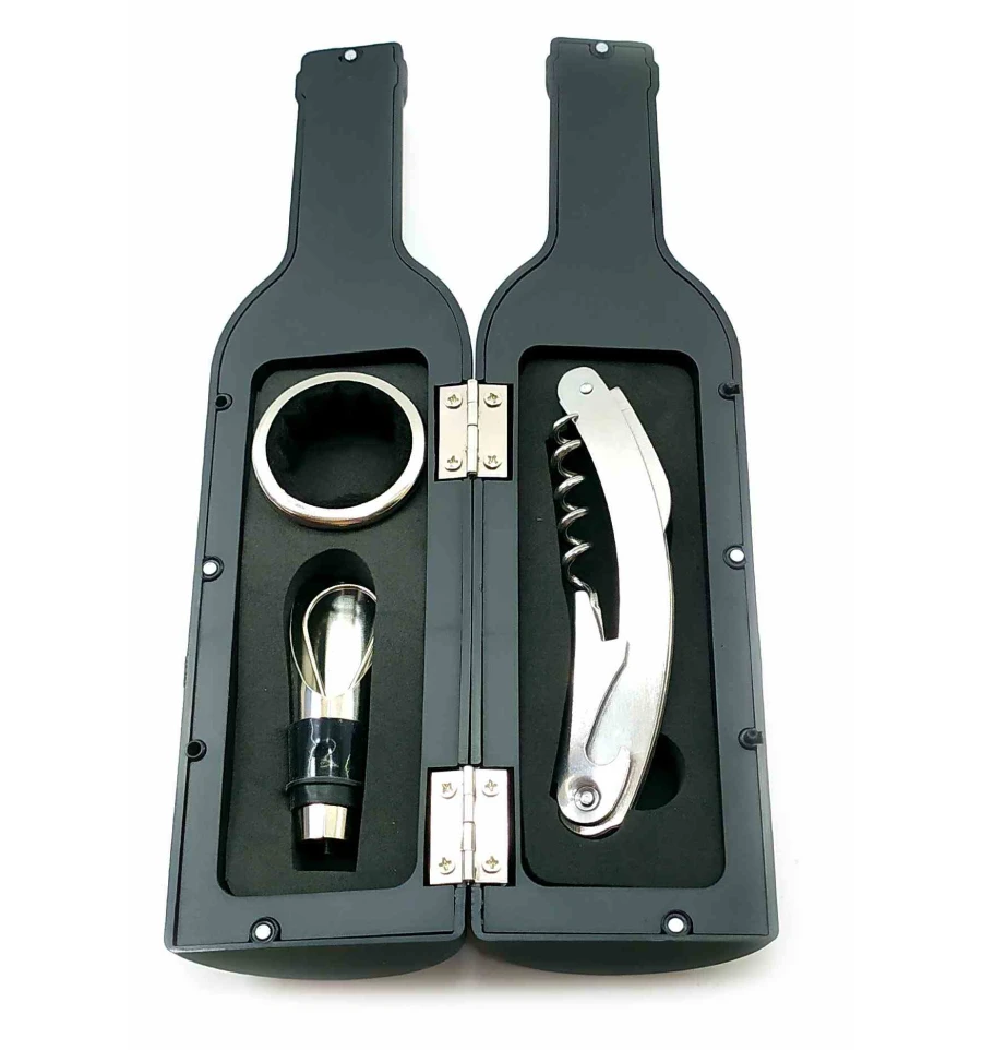 Стильний набір, який зробить розпиття напою ще приємнішим. Набір винних аксесуарів - це зручний та елегантний набір для відкорковування та розливу вин. Корисний та потрібний подарунок для любителів вина.