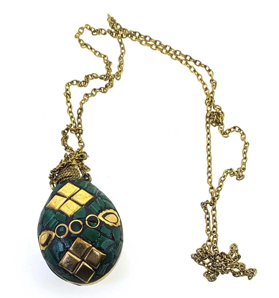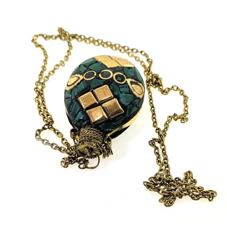 Аромакулон бронзовий з малахітовими вставками (5.5×4.5×2 см)