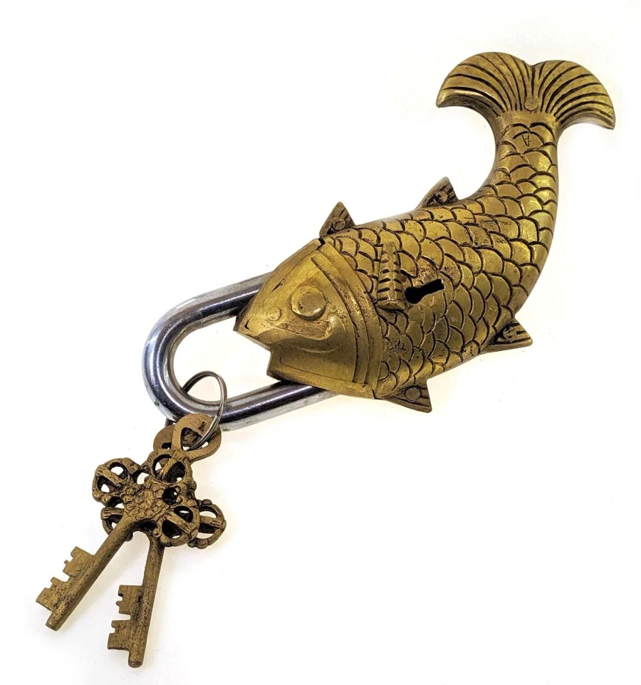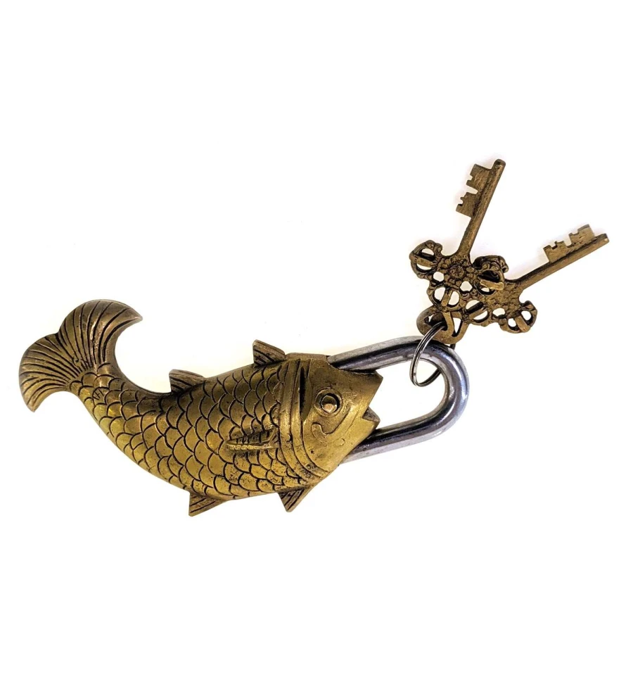 Тибетський бронзовий замок «Риба» (18×9×3 см) (480 г)