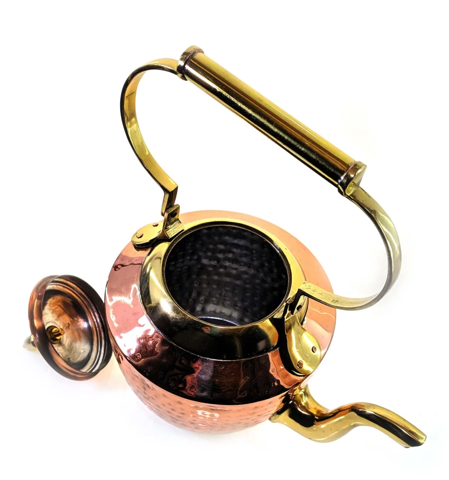 Мідний чайник об'ємом 2 літри, розміром 30х25х15 см. Цей гарний і унікальний чайник буде відмінним доповненням до вашої колекції посуду. Виготовлений із міді, він має відмінні теплові властивості та швидко нагрівається. Чайник має гарний глянсовий блиск і доповнений ручкою та носиком з латуні, які не тільки забезпечують надійний захист від опіків, але й надають йому стильного вигляду. З його допомогою ви зможете швидко та легко приготувати свій улюблений чай та здивувати своїх гостей своїм смаком та стилем.