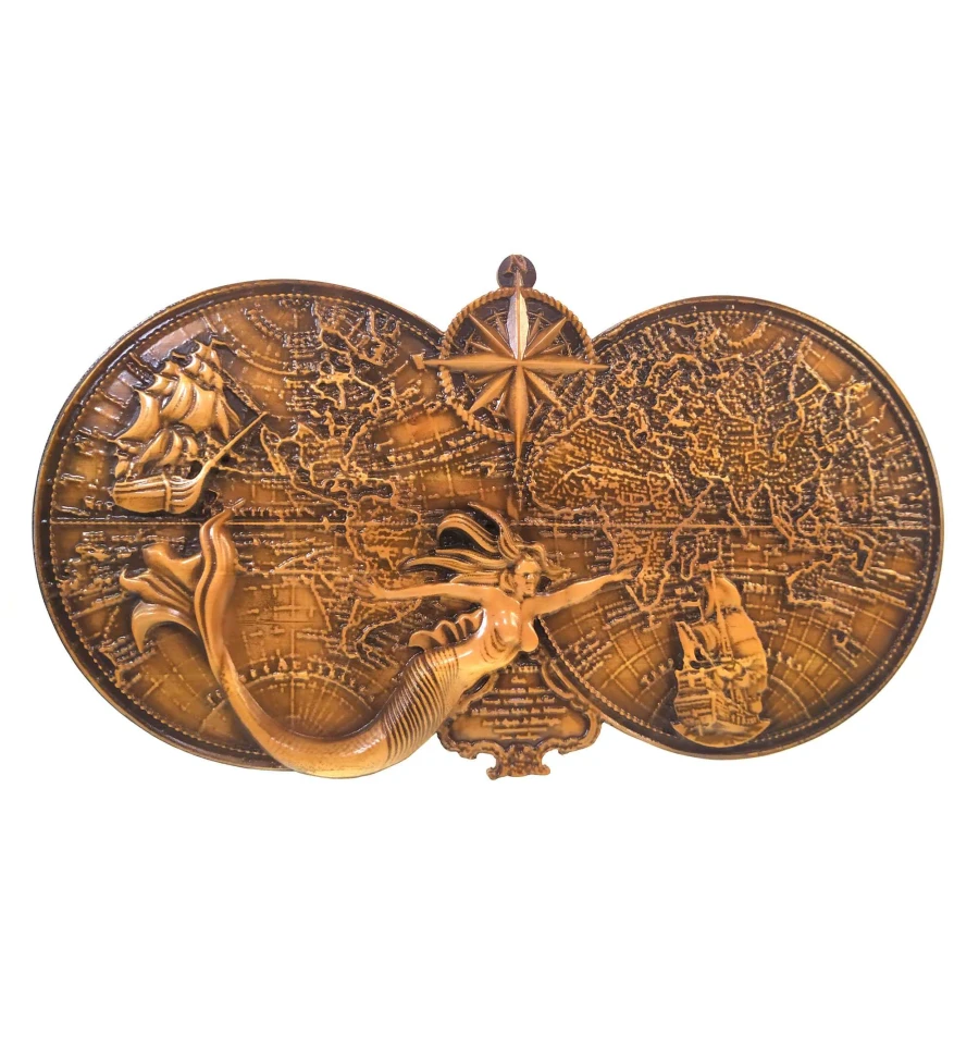 Панно різьблене, дерев'яне «морська карта з русалкою», покрите патиною (46×26×2 см)